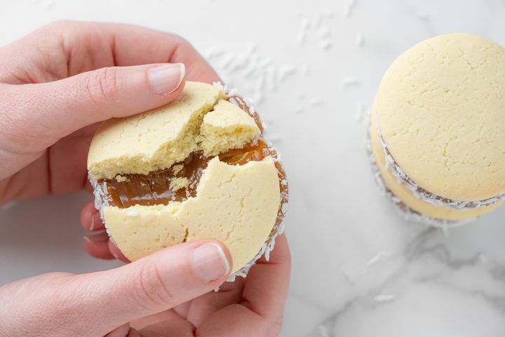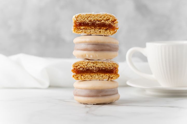 - 6 alfajores estilo cordobés rellenos de dulce de leche casero y glaseado de limón por fuera. Ver más detalles